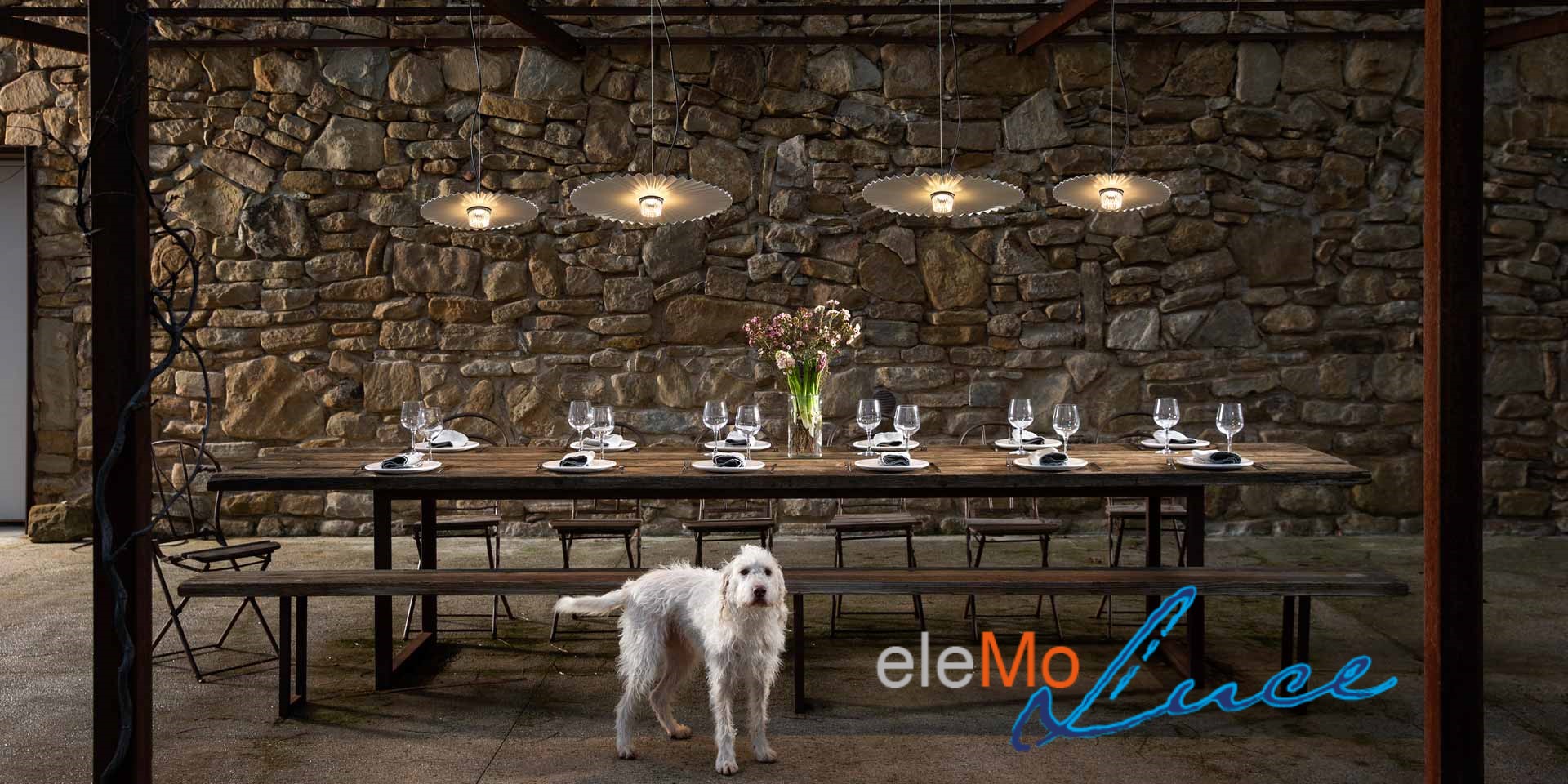 Gonzaga, una lampada che sembra danzare nello spazio con le sue geometrie minimali sulle quali luci e ombre si rincorrono all’infinito generando un silente dinamismo scenografico.