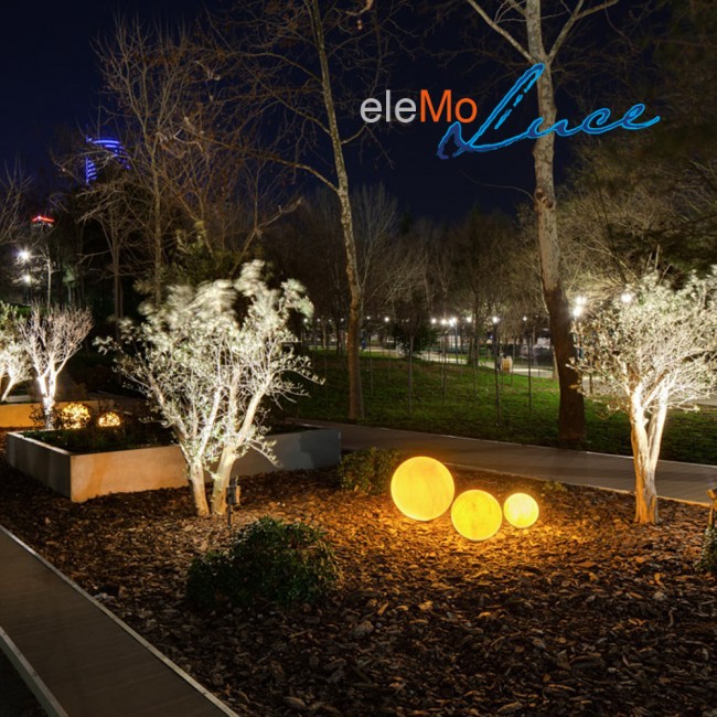 Sfere luminose decorative dal colore arancio-rossastro, per un’illuminazione creativa di ambienti esterni residenziali, come i giardini e non solo. Sfere con corpo diffondente in polietilene lineare dal colore lavico.