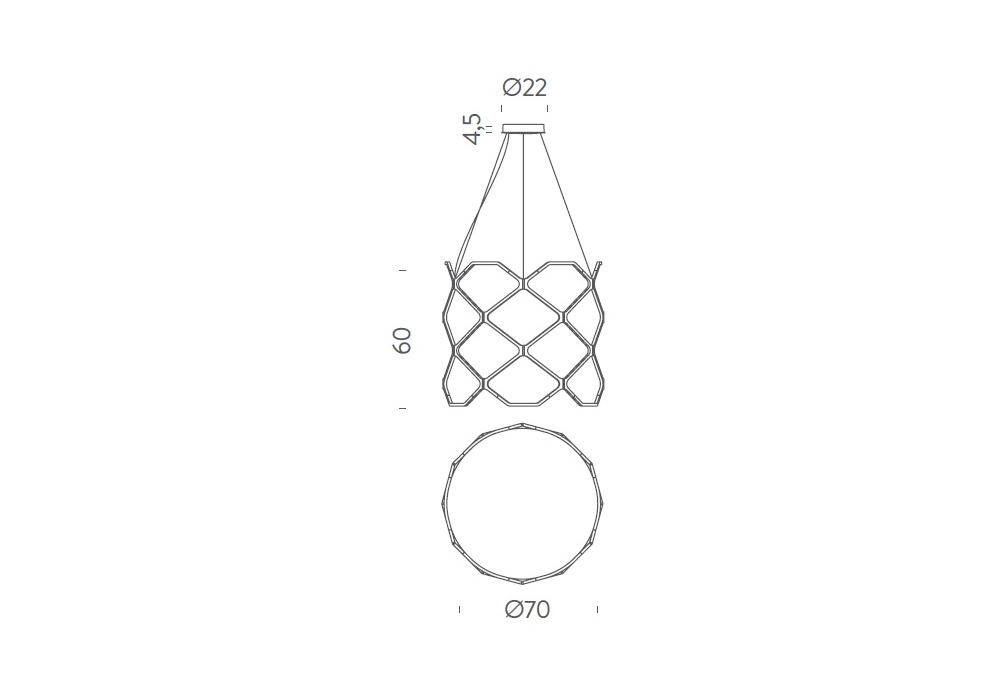 Titia è un turbinio di luce sospeso, “Avevo in mente una lampada che avrebbe unito lo spirito delle ghirlande natalizie e delle giostre di legno,” riassume Arihiro Miyake. “È una vecchia idea che finalmente riesco a dare i suoi frutti grazie allo sviluppo della tecnologia LED. Un grappolo di punti luce è racchiuso in una forma il più leggera possibile. L’obiettivo di Titia è quello di illuminare un tavolo in modo diffuso e omogeneo.